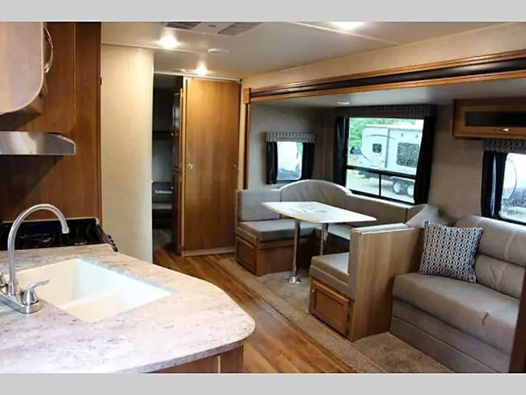 This Coachmen Catalina Legacy model 293Qbck travel trailer offers spacious living for a larger family. This unit sleeps nine, so now you can comfortably camp with your whole family or even a guest or two. The rear bunkhouse features a set of bunk beds plus an upper bunk. Within the slide out along the roadside you will find a u-dinette and a sofa where you can visit or easily convert these into additional sleeping spots. For a quiet retreat you will enjoy the private front bedroom. Your outdoor living space is maximized with the 18' awning, plus the chef in the family will enjoy the pull out camp kitchen and more!