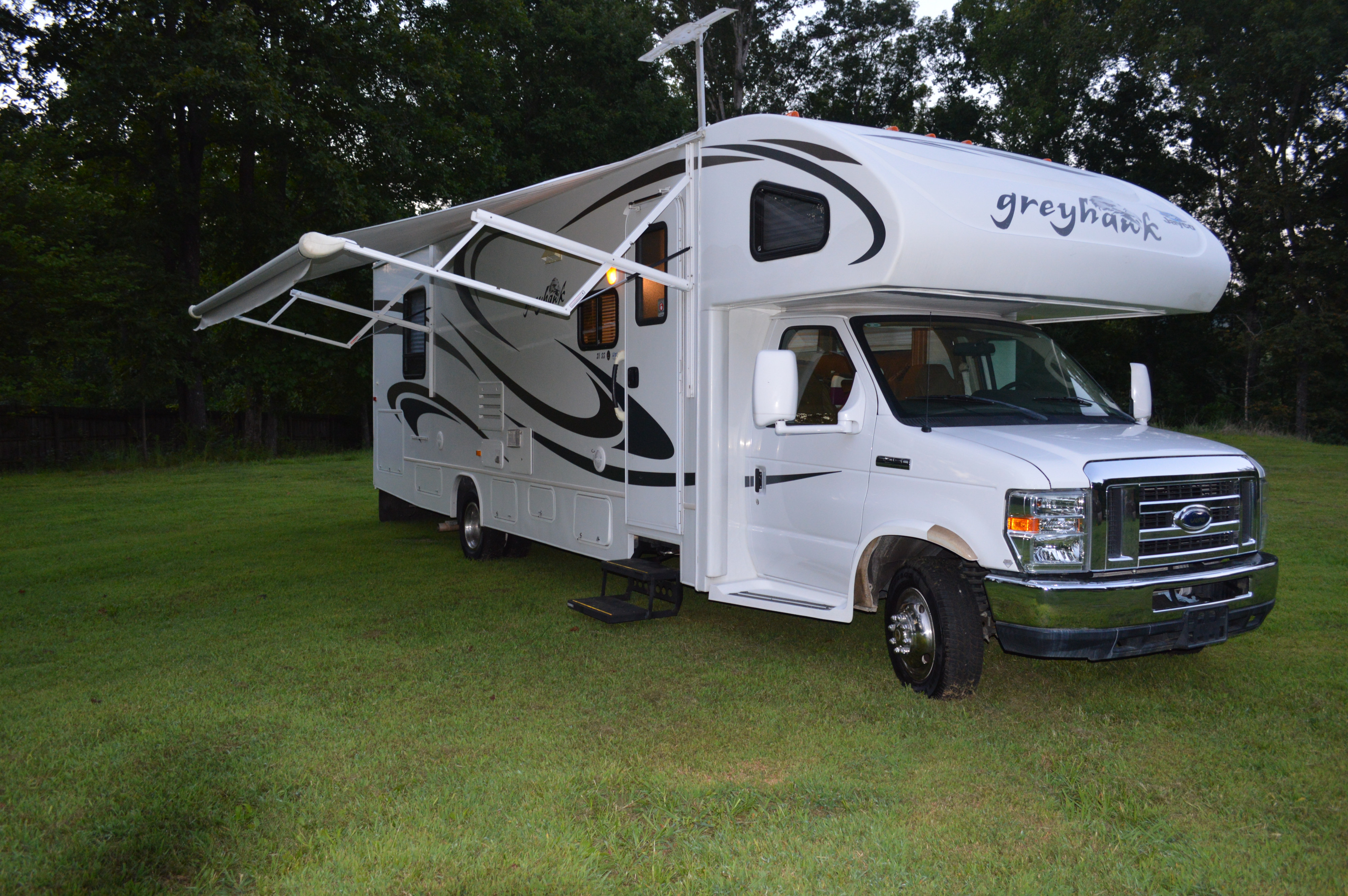 Very Roomy 2010 Jayco Greyhawk 31SS, sits on a Ford E-450 chassis. The coach sleeps around 6 adults comfortably or 4 adults and 5 children depending on their age. We have a queen bed in the back, a queen bunk over the cab, along with a counch and dinette that each fold into a full size bed. Coach comes complete with awning, on board generator, leather seats, two flat screen televisions one with blue ray/dvd player, gas stove and oven, gas grill for outdoor cooking, plenty of storage, linens and towels, plates & bowls, silverware, etc. This RV is perfect for road trips, weekend getaways, special events.