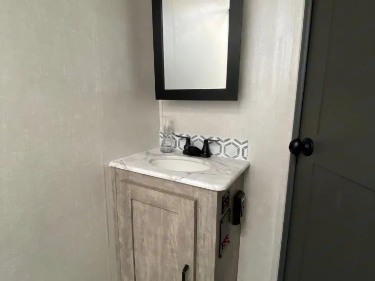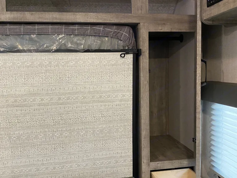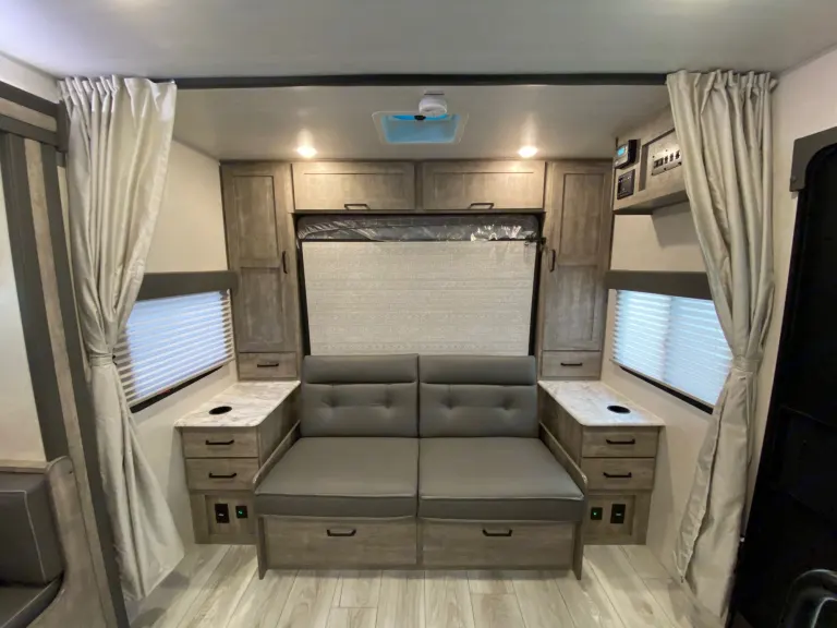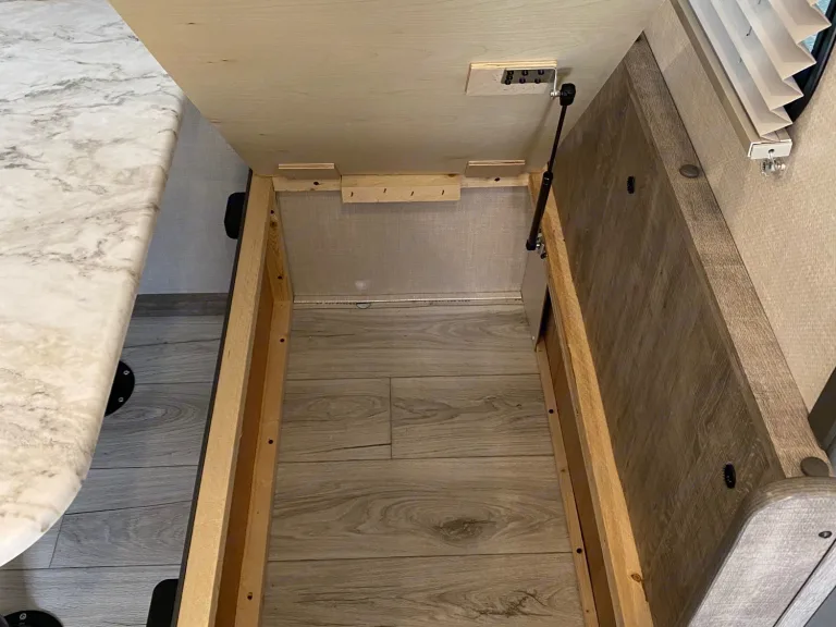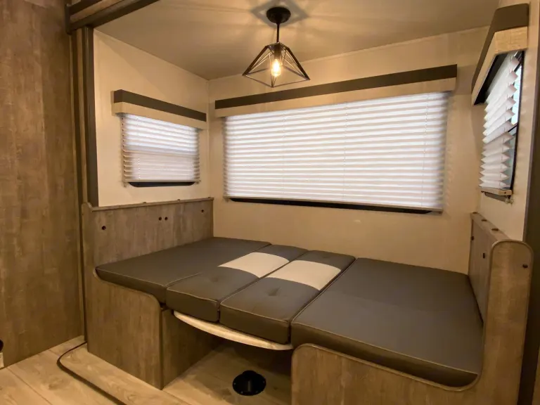 Additional batteries added for multi-day off-grid camping!Standard Features:Full size queen murphy bed that stores to provide additional couch seating!