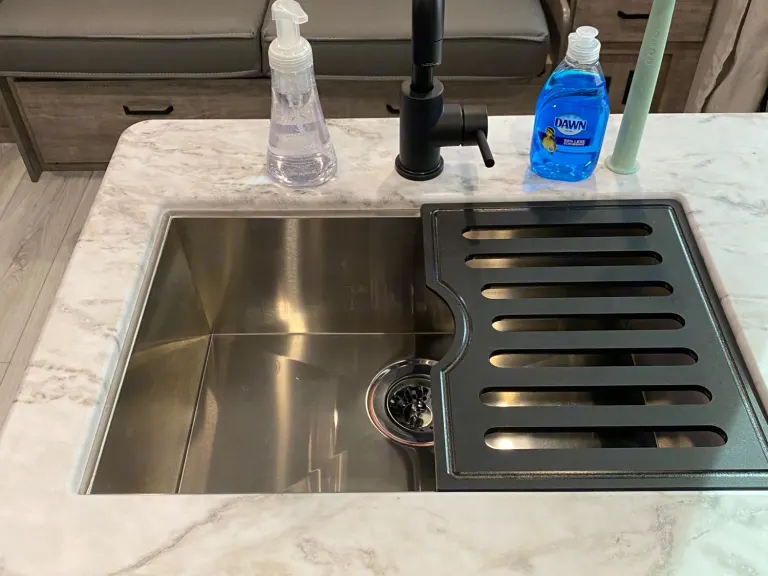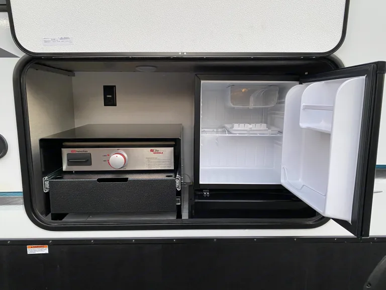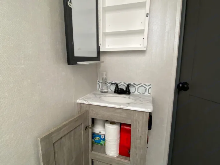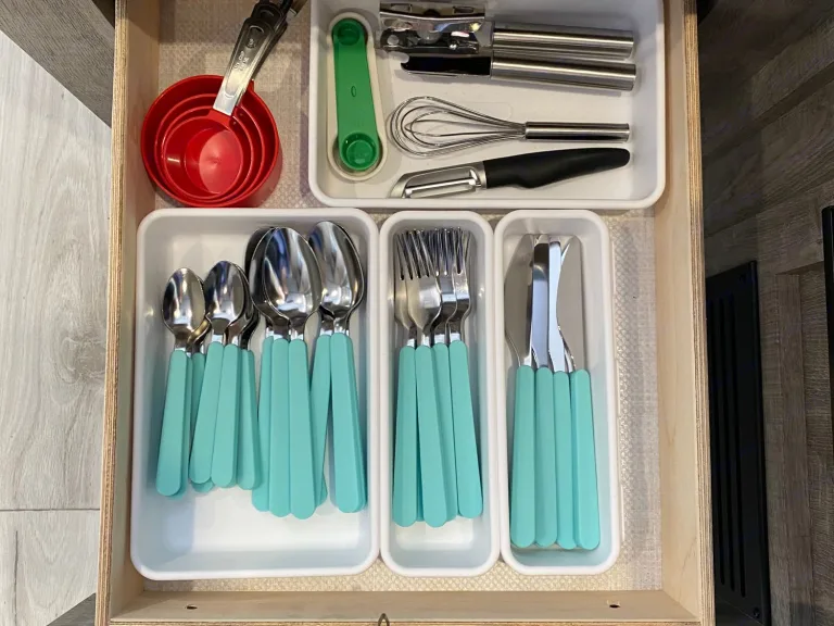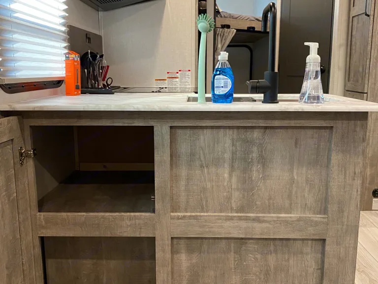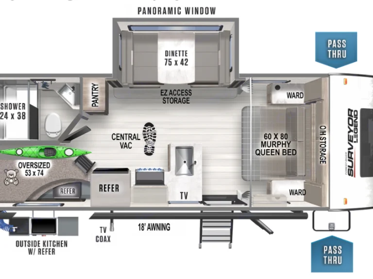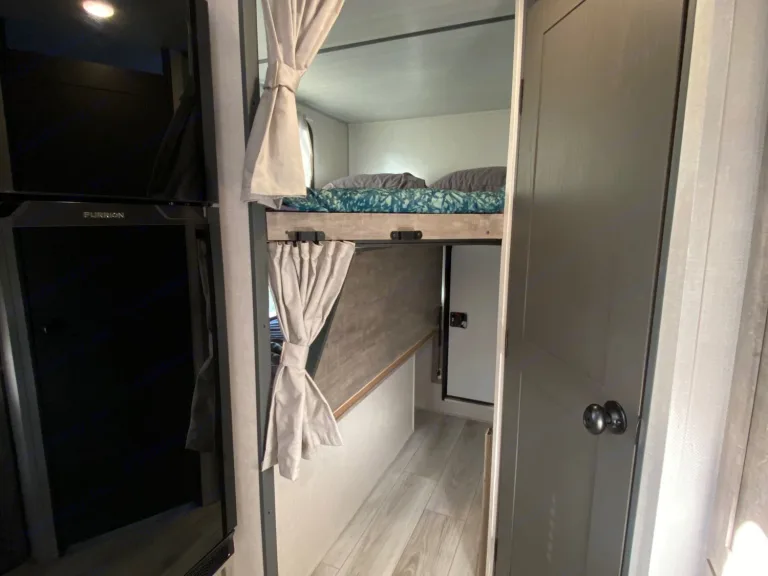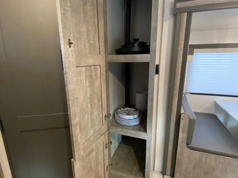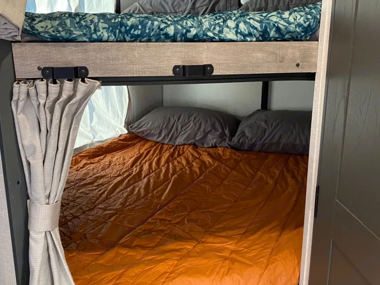 Rear pack n play door - stores kayaks, paddle boards, scooters, and small bikes under bunk bedWhat's includedDishes and silverware for 8 people included