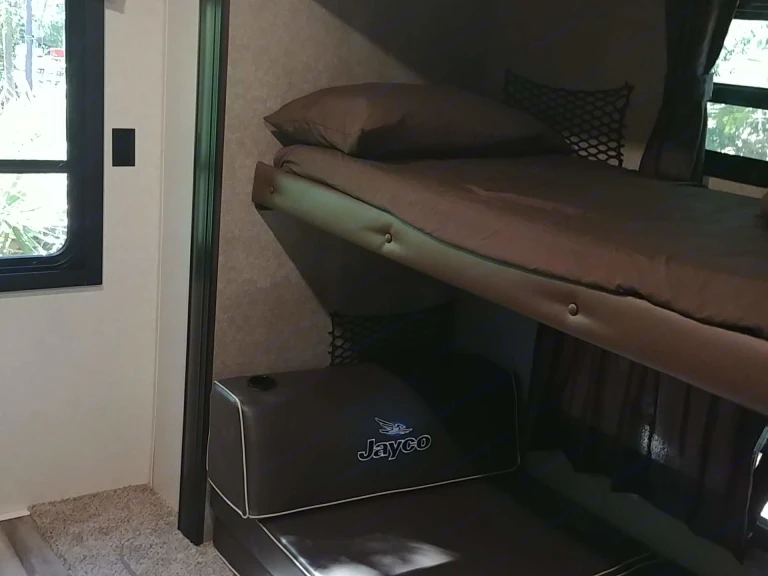 New 2018 Jayco! Sleeps 10! We provide everything you need bedding, towels, dishes, etc. to have a Fantastic vacation! Just bring your clothes and food, and we'll provide the rest!We have tips and tricks to help with your stay and vacation planning and would love to share. Feel free to ask any questions you may have!-Front Bedroom with Queen