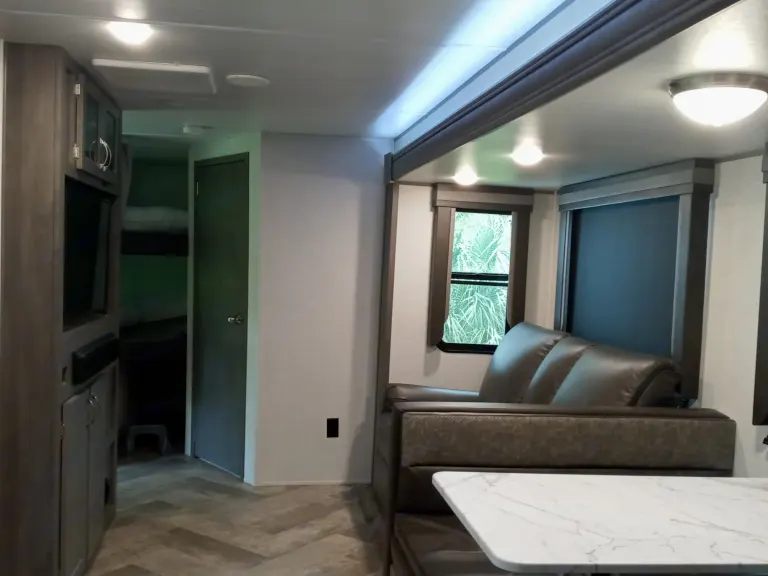 2021 Forest River Alta 2800KBH is Clean, Comfy and spacious. King size bed with memory foam. Lots of storage. Outside kitchen with grill and small fridge. Stocked with dishes, pot and pans, silverware. Linens and Towels available upon request. 2 comfy recliners. RecommendationsWe are close to Jetty Park at Port Canaveral and Fort Wilderness at Disney World. Will deliver and set up to these places for $ 125Other things to note$30 fee if not returned with black tank empty.