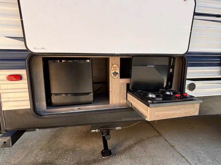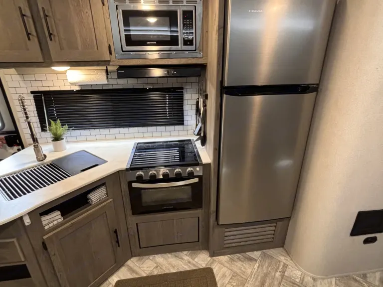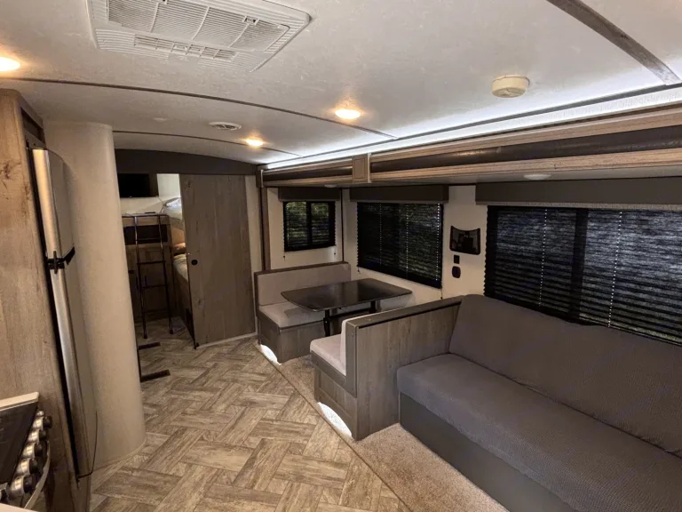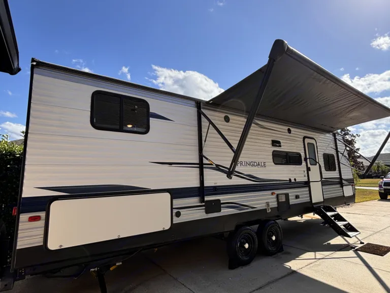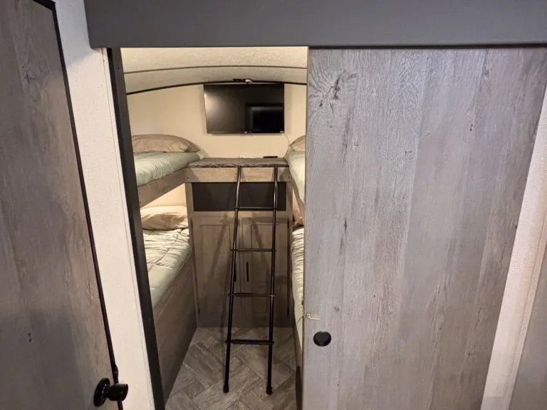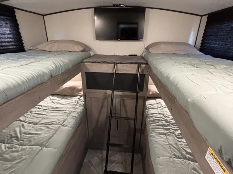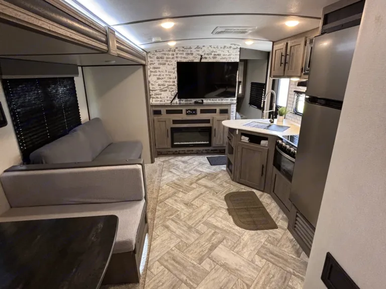 This 2021 Keystone Springdale 298BH is a spacious, family-friendly travel trailer perfect for group trips and comfortable camping. It sleeps up to 9–10 people with a private queen bedroom, four bunk beds, a convertible dinette, and a sofa bed—making it ideal for families with kids or groups of friends. Inside, you’ll enjoy a full kitchen, a bathroom with shower, air conditioning, a slide-out that creates extra living space so it never feels cramped, and a cozy fireplace that adds warmth and ambiance. With plenty of room and all the comforts you need on the road, this RV is a great choice for renters looking for a roomy, comfortable, and easy-to-use travel trailer for their next adventure.