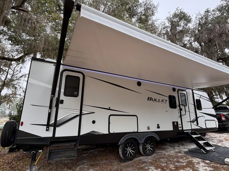 Experience the perfect blend of comfort and adventure with the 2022 Keystone Bullet 290BHS. This lightweight travel trailer features a spacious bunkhouse layout with double-size bunks, a queen bedroom, and convertible dinette and sofa, comfortably sleeping up to nine guests. Enjoy the open feel of the slide-out living area, a fully equipped kitchen inside, and an optional outdoor kitchen for dining al fresco. With dual entry doors, ample storage, and durable construction, the Bullet 290BHS is designed for family trips, weekend getaways, or extended adventures—making every journey effortless and memorable.