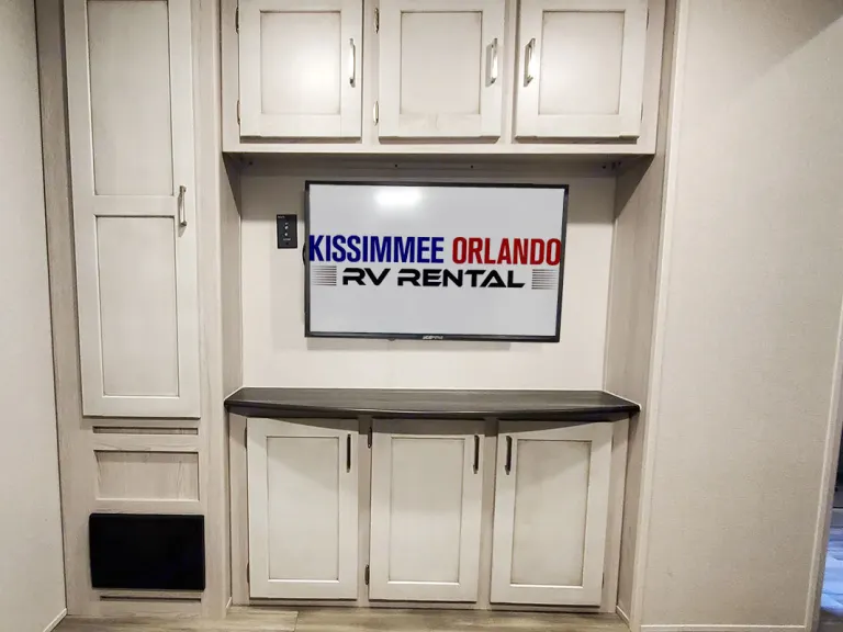 Your fully-outfitted RV rental will include everything you'll need for a relaxing time like pillows and bedding for all sleep areas, premium towels, paper products, pots, pans, flatware set, cutlery set, coffee maker, toaster, blender, rice cooker/veggie steamer, broom with dust pan, cleaning supplies/garbage bags, plus much more. Let us deliver, set-up, and all you have to do is show up and enjoy! Reserve your Sprinter 3590LFT Fifth Wheel today!AmenitiesPet Friendly (one pet max)40’ Length, Sleeps up to 9Four Slide-Outs2 Private BedroomsKing Master Bedroom w/ TVLarge Walk-In Shower w/ BenchDen/Bedroom with F/Q SleeperQueen Loft above DenSpacious, Open Living AreaTheater SeatingQueen Sofa SleeperSleeper DinetteLarge, Fully Stocked KitchenTwo Large Power Awning w/ LEDs43" HD LED TVLarge Electric Fireplace12CF RefrigeratorBlueRay/DVD PlayerOutside TVPropane GrillPremium Linens, Towels, etc.Outdoor Chairs, Plus Much More!Only Kissimmee Orlando RV Rental offers an assortment of accessories to enhance your RV vacation experience and make life easy. From 4-passenger golf carts to portable cribs, these popular add-on items are available for any of our rentals. You will be provided a complete accessory list with your reservation confirmation. A Few Of Our Available Accessories For Your Outdoor Adventure:Adult & Childrens Bicycles | Outdoor Screened Tent | Outdoor Pop-Up Tent | Large Coolers | Fire Pit | Hammocks | 6’ Folding Table | Portable Crib | Pack n’ Play | Outdoor Games | Camping Accessories | RV Exterior Water Filter | Outdoor Screened Tent | and more!Delivery / Pick-UP*We want you to have the best vacation with the least to worry about. Delivery, Set-up and Pick-Up in Orlando & Kissimmee, and surrounding areas is available! For your comfort, please make sure full hookups (water, sewer & 50 amp electric) are available at your campground of choice. We do not allow dry camping.Special events (Nascar, Concert events, etc) have minimum stay requirements.View our full lineup of Camper Rentals and RV Rentals!