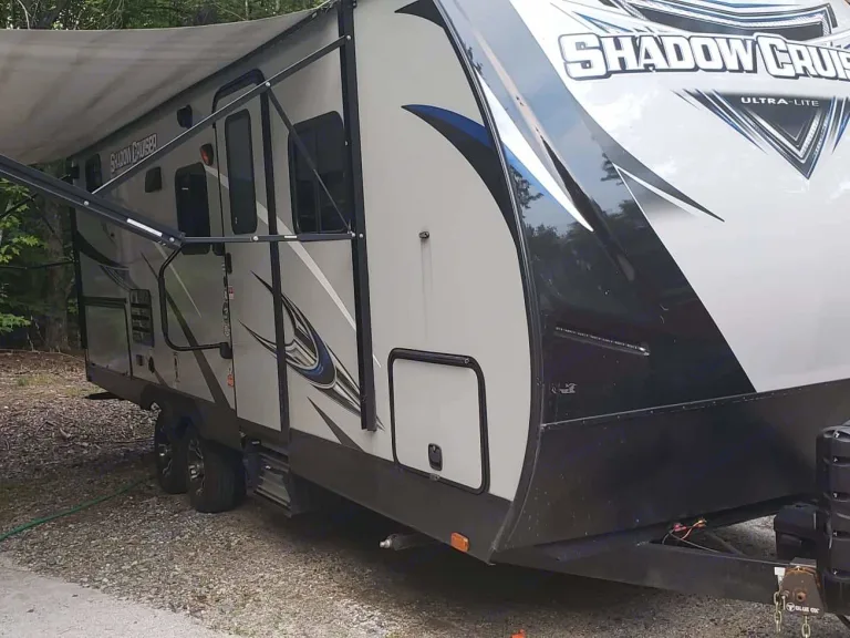 I offer delivery on my 2019 shadow cruiser Sunday's and Monday's only. I normally deliver and set up within a reasonable distance from zip code 04270. Set up included with delivery fee. Times I can deliver and pick up are Sunday's and Monday's only due to my work schedule! This camper is very comfortable. Will sleep 6 total. Flat screen tv, outdoor kitchen, LED lights, power awning, power slide out, power jack, Blue tooth sound system with dvd, USB jacks throughout. Bunk Beds in back and a Queen bed in front. Awesome family camper! One dog will be considered for an additional fee.