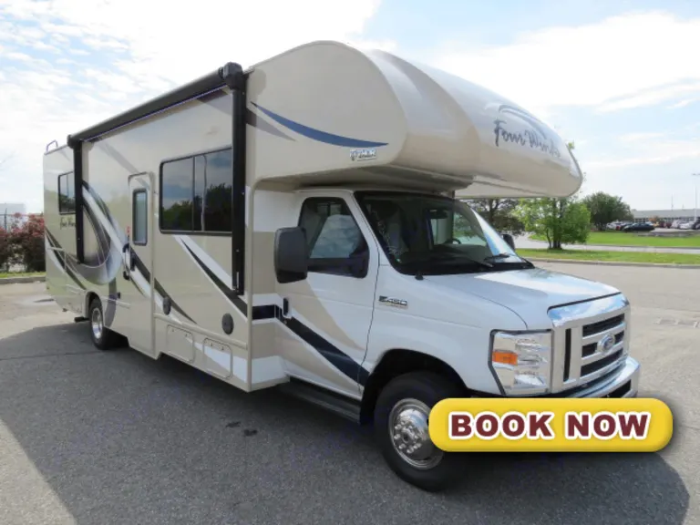 Phone:Enjoy each adventure in this Thor Motor Coach class C home on wheels. This Four Winds model 28Z offers added comfort including a large slide out in the living area, and rear bedroom featuring a queen size bed. As you enter notice how spacious it feels in this coach with the large slide out fully extended. There is a jack-knife sofa to the right of the door including overhead storage. A cab over bunk above the driver area provides a bit more sleeping space that the kids will certainly love. Across from the entry door is a Dream dinette, double kitchen sink, and a three burner range-top with microwave oven above. The slide out creates a roomy interior with plenty of space for everyone to move around. Both the sofa and dinette can easily be made into more sleeping space when needed. There is also a refrigerator located just off the slide next to the range. A 40" LED TV is centrally located for viewing from the sofa, dinette, or cab over bunk. There is a convenient bath that features a shower, toilet, and large vanity with sink. Plus you will like the large overhead cabinet for towels and toiletries. The rear bedroom gives you a bit more privacy and features a 60" x 74" bed. There are also dual closets, an overhead storage cabinets, and an optional 32" LED TV.Winter Rentals- Our rental units will be winterized as of October 15th.
