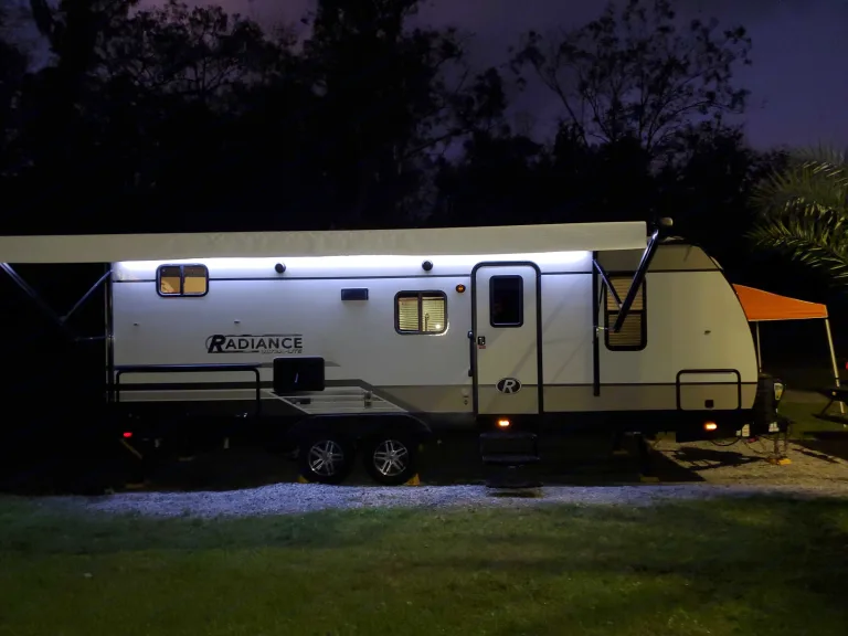 A Brand New 2019 Cruise Radiance 24 BH Bunkhouse (bunk beds, bunks) with 1 slide. This RV has a King Size Bed with private sleeping area, 2 expansive bunk bunks which sleeps 2 (4 if small children) and a drop down kitchen table (sleeps 2). It's equipped with central heat and A/C, microwave oven, gas grill cook top, large fridge, double sink, pantry AM/FM/BT Radio with indoor/outdoor speakers and a 43" tv in the main area. Outdoors you'll find an outdoor kitchen with sink 2 burner stove, and small fridge. Also comes with a gas grill and a folding table with 4 chairs for those outdoor BBQ's. Use of awning is not permitted so also comes with a 10 x 10 pop up tent for covering.**Delivery fee is minimum $100 within a 50 mile radius of the Orlando area only.**If bringing a pet please contact the owner and give a description.Will only deliver to locations to have on site sewer hookups or an on site dump station. If the renter is taking the RV then they are responsible for dumping the tanks prior to moving the RV. A small distance may be necessary to reach a dump station which is fine. Please do not drive it long distances or at high speeds with full tanks. What's includedComes with dishes, cups, cookware, silverware, small coffee maker & filters, and toaster for dining.Bathroom comes with toilet paper, 6 bath towels, and wash rags.Bedroom comes with a sheet and comforter set with pillows. Both bunks comes with a set as well.For outside there is a folding table with 4 folding chairs and a pop up tent. Along with the outdoor kitchen there is also a small gas grill. *Note use of the RV Awning is not permitted due to liability purposes.Other things to noteOnly the registered driver is allowed to tow the trailer. Anyone else found driving will result in forfeit of security deposit.Use of RV Awning is NOT permitted. The awning is not covered under Outdoorsy's insurance coverage. So to reduce liability for the renter we have decided not to allow use. They are very expensive to replace and if a renter happens to leave it out and a storm blows through (which is almost every day in Florida) and rips it off the renter would be liable for replacement. If renter really wants to use the awning I will have to up the security deposit to $3000. I have included a 10 x 10 pop up awning in it's place.