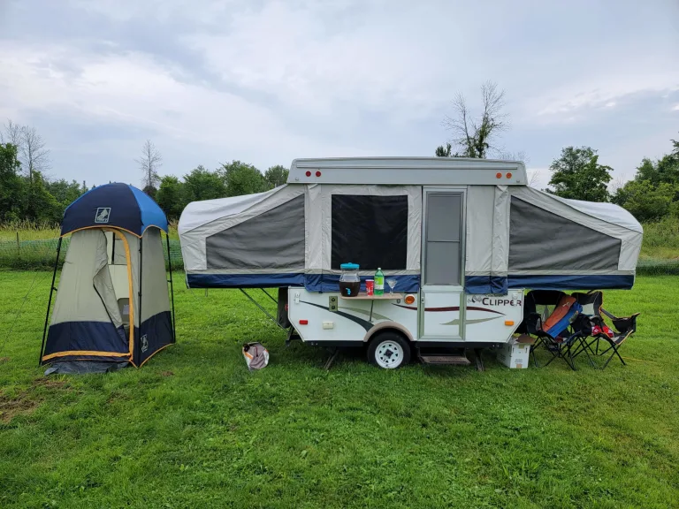 Lightweight pop up tent trailer. Easily towable by most vehicles at ~1500lbsThe trailer has two double beds, and a dinette that converts to a bed for extra sleeping space. The kitchen area has a two burner propane stove, sink and small fridge. Included is basic kitchenware (dishes, utensils, can opener etc) as well as a small electric toaster oven.Also included is a compact tabletop barbeque. Propane not included; a 20lbs propane tank is available as an add-on, or you can use your own.Simply bring your bedding and enjoy your stay wherever that may be!Please note for towing - a 2" ball hitch & 7 pin connector is required (4 flat to 7 pin adapter is acceptable). Trailer is aprox 1520lbs dry weight.Full propane tank provided with each rental which serves the inside cooking burners and heater only. Please select propane add-on option if you will be using the indoor appliances, or one of the BBQs, otherwise please plan ahead and refill the tank prior to trailer return. If a BBQ as well as trailer propane (for heat or cooking) is required, please select propane quantity add-on x2.Please note - a brake controller is NOT necessary to tow this trailer.What's includedMattress protectors, coffee maker, cups, plates, bowls, utensils - forks, knives, spoons, bbq utensils, roasting sticks.