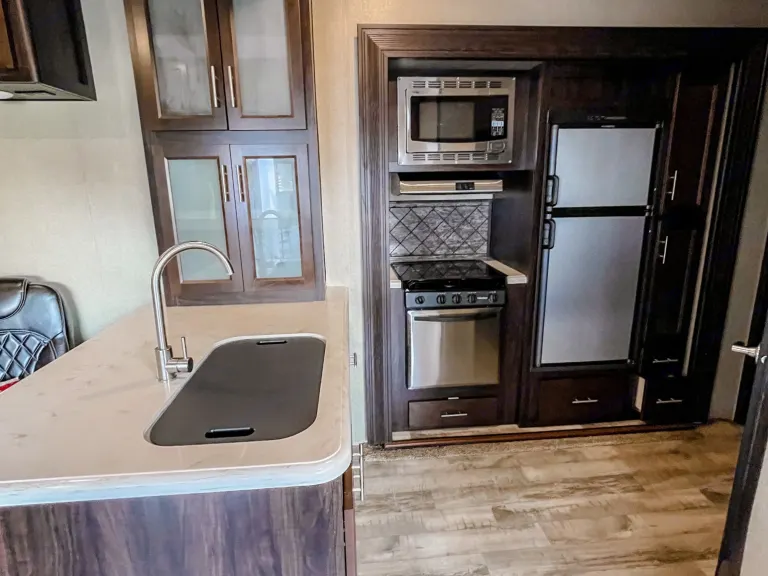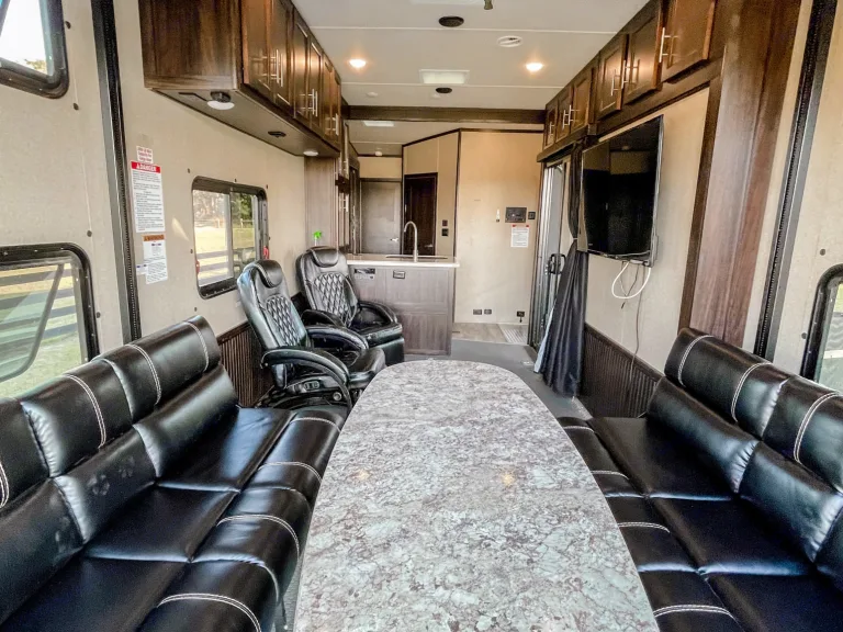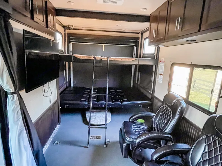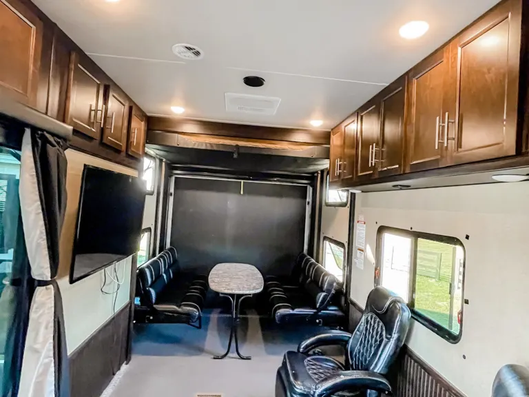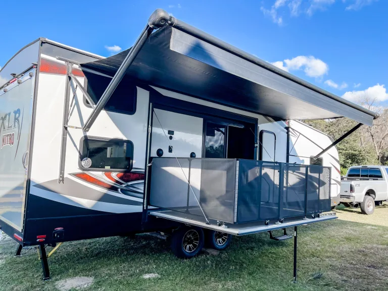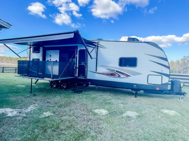 WE Deliver to take the stress of towing off your hands to any campground and RV parks in the central Florida area. You must Book your own campsite.We want you to feel at home on your vacation. Therefore, we provide everything you will need, leaving you plenty of space in your suitcase for souvenirs. Camper offers a private king master bedroom, king bed and a fold down queen in rear of camper, and a fold down table. A Full bathroom with shower, toilet, and sink. The kitchen offers a 3-burner stove, oven, microwave, and refrigerator. The TV is complete with cable hook-up (where available)Strict NO Smoking and NO PET policy in the RV Please.Drop-off times and pick-up times may vary based on campground check-in and check-out times as well as our availability throughout the week.What's includedLinens and towels included with rental. Kitchen equipped with basic pots/pans, utensils in pantry, grill and griddle. 52 TV in living room, small TV in bedroom, BT radio equipped with inside and outdoor speakers. Plenty of room for the whole family to get away and relax. Outside folding table and chairs provided, along with cornhole boards.Other things to noteNo smoking and no pets. Golf cart may be provided for extra fee depending on availability.