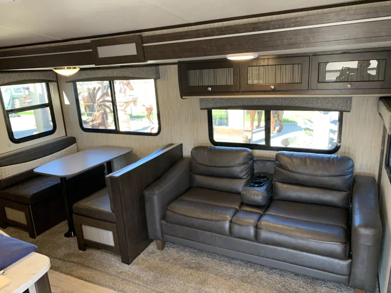 2 Slide outs for extra space for large living area. Delivery available please message for details. Queen size master bedroom sleeps 2... table turns into bed and sleep 2... and there's a set of Full bunk beds for children or adults under 300 pounds. Privacy curtain for bunk beds. Comfortable couch turns into a bed. Comes with coffee maker, Toaster. Bluetooth capabilities with sound System. Electric Awning, and Electric stabilizer jacks. Outside kitchen. Private bedroom with pocket style door. No bedding provided.
