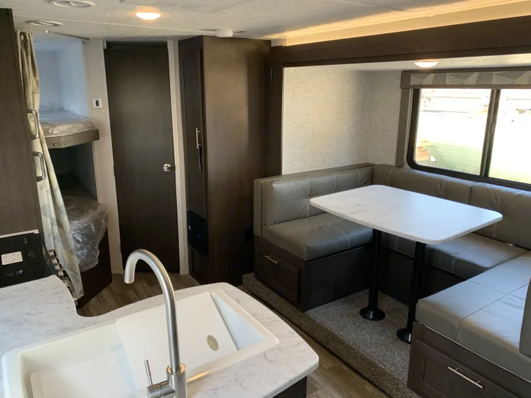 Forest River Salem Travel Trailer sleeps 8. Slide out for extra space. Delivery available please message for details. Queen size master bedroom sleeps 2... table turns into bed and sleep 2... and there's a set of Full bunk beds for children or adults under 300 pounds. Privacy curtain for bunk beds. Comes with coffee maker, Toaster. Bluetooth capabilities with sound System. Electric Awning, and Electric stabilizer jacks. Outside kitchen. Private bedroom with door. Comes with solar panel to keep batteries nice and charged. No bedding provided.