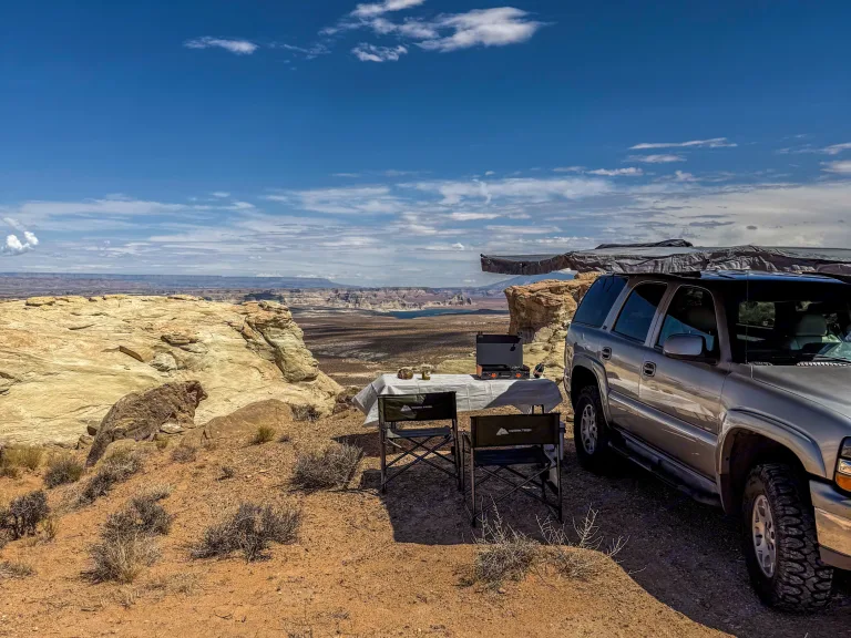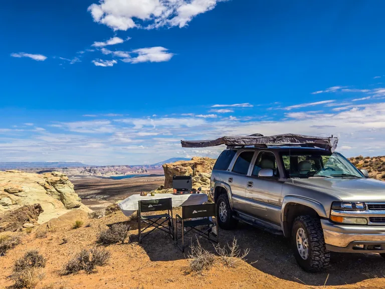 RecommendationsSkip the hassle of RVs or hauling gear. Our Overland Tahoe gets you deeper into the wild, with the comfort and convenience already packed in. Whether you’re exploring slot canyons, stargazing in the desert, or making breakfast on the rim of Lake Powell, this rig is designed to take you there.Perfect for: desert escapes, overlanding adventures, weekend getaways, or bucket-list road trips.Other things to noteNo smoking or vaping inside the Tahoe, tent, or under the awning.Cooking must be done outdoors — please do not use the stove or grill inside the Tahoe or under the awning for safety reasons.