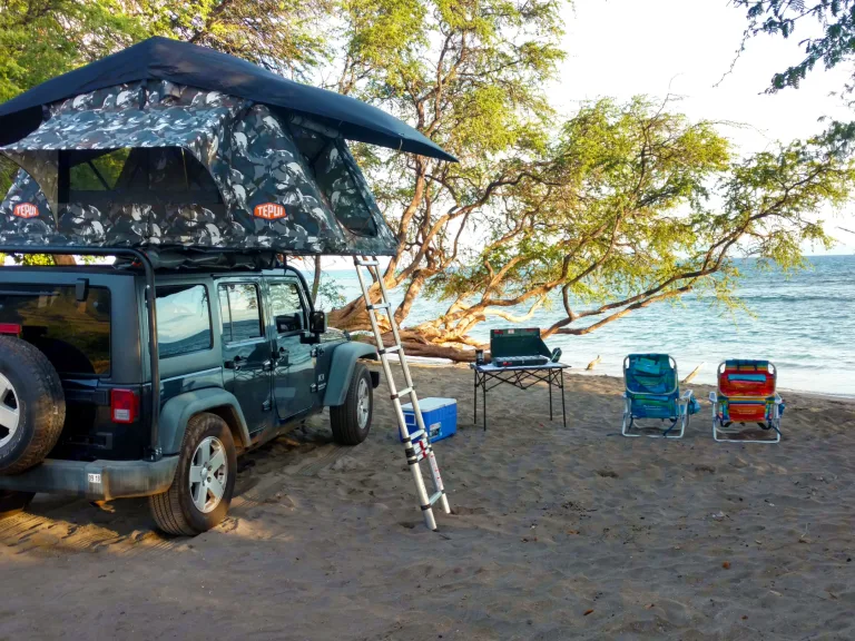 Come see what Maui really has to offer by cruising around the island in my Jeep! Outfitted with a rooftop Tepui tent and all the camping gear you need, this ride is the ultimate adventure.The Road to Hana and the Summit of Haleakala deserve more than a couple hours... now, you can take your sweet time and enjoy a complete home on wheels. Instead of rushing around Hana to get back to your hotel, all you'll need to do is head to the nearest campsite and set up your own personal paradise- complete with whatever view you desire!Included with the Jeep and the Tepui tent are the following pieces of camping gear: