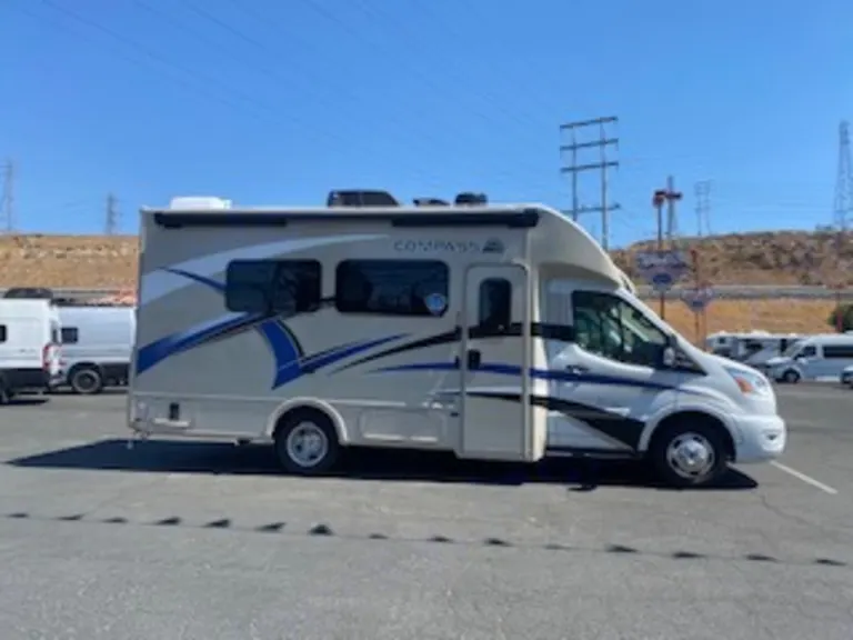 This All Wheel Drive Thor Compass is a brand new model Motor Coach and because it is small and is all wheel drive, , it is super easy to drive and to park in many locations that do not allow larger RV's. In addition to a very comfy queen sized bed, there are two fully reclining swivel seats that can be used to sleep if you have a couple of kids or even a guest or two. The Queen sized bed can also accommodate two large adults and a child if needed. We provide clean bedding.This motorhome has all the comforts of home, including, a small stove, convection oven, nice sized sink, full shower and plenty of storage in the closet and many drawers and cabinets.