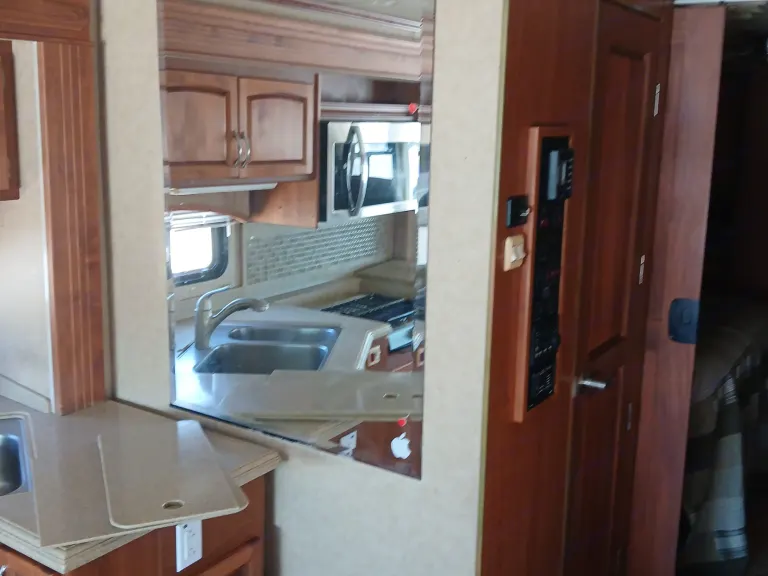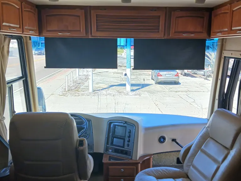 41 exact feet with a king bed in the master bed room which includes a master bathroom with a full size shower a washer/dryer in one full size closet toilet and sink with mirror that opens to a vanity with shells for hygiene placement space. The entrance of the RV has you come thru the passenger side of the front of this spacious beauty and you see the captain and co-captains chair with spacious room to move and stretch while driving. You have all the buttons to the left and right of the driver's seat that control wall aspects of the vehicle. From hydraulic lift for when you park and get ready to pop the slide outs out which this RV has 3 main slide outs that make it into a 1000 sq ft condo on the inside when everything is extended and the awnings that cover all sides and protect all windows and glass features on the outside of the RV while parked and stationed for however long you plan on being at the destination you stop at. To the left of the RV when you pass the the front driver and front passenger chairs you see that a tan leather couch is sitting to the right which have 2 recliner seats on each side for relaxing TV watching which you get to enjoy the heat from the fireplace and view of the 42 inch flat screen above that 5 feet across from you if your enjoying the comfortable leather couch with another friend or loved one. Next to the couch is a dining room table with 4 seats available to sit around the table so people can enjoy a nice meal together after cooking up a homemade meal out of the full blown updated kitchen with an oven, 4 burner stove top, plenty of counter space to prepare food for the meal that your fellow vacationers are about to enjoy from the nice homely feeling of having the option of cooking a 4 course meal or just a snack in the best part of this ahead of its time RV that most people will never be able to enjoy such exquisite design of a 6 figure RV that you don't have to leave if you don't feel like it bc it has everything you need including another half bath that has a four door refrigerator/freezer across from it. The entire Ambassador has more cabinet and drawer space than ever needed for just 6 people bc every inch of this 41ft beauty has a cupboard to git your special and important belongings safe and secure while traveling and stationary. The awnings that cover both sides completely will allow you to enjoy the outside even if the weather doesn't want you too. With all that you have to remember that this big beauty has storage space for whatever you need or desire. From the back of the rv where the generator lies, you have the inverter on the opposite side next to the 6 car batteries that power the RV. 4 of which power all components inside the RV and make sure you won't have a unpowered vacation and the other two batteries that power the engine that you do turn to idle while stationary so they dont run out of power. The other side of the RV next to the generator you have the electricity hookup, the water hookup for all three tanks which supply the shower, the sinks, the toilet and flush the sewage into the sewage line disposal and the washer and dryer. Which in this RV they are one machine that does both the washing and drying so the efficiency is at the best it possibly can be. The AC and Heat are in amazing condition with the ability to make the RV custom to how you and your fellow vacationers want it to be set at. What's included• Toiletitry and towels stocked in each bathroom and towels for kitchen uses will be stocked for you. The kitchen has everything you can think of for cooking utensils and pots, pans, plates, bowls and cups. The RV with be stocked with a vacuum and the necessary cleaning supplies needed to make sure you can keep my RV in tip-top shape while you travel and enjoy your vacation.RecommendationsThis RV may be 17 years old but with only 62000 miles on it going anywhere drivable is a possibility from across continents or just across town you can feel safe and assured you won't havevajy issues with this amazing opportunity.Other things to noteNo smoking inside the RV. Please let me know what your trip will endure so the proper materials will be put on the RV to last and fulfill your needs.
