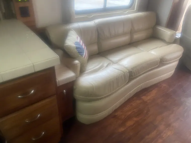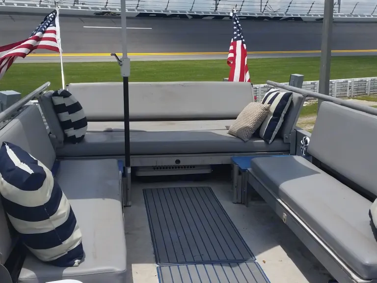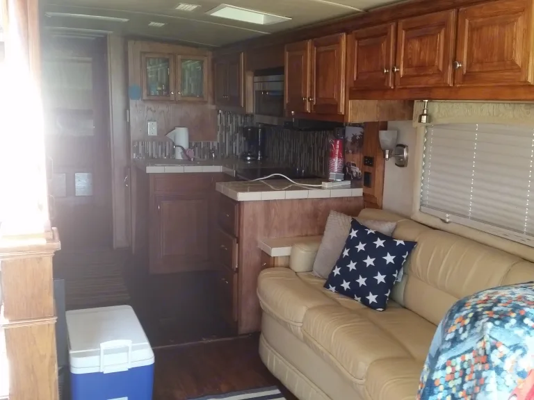 This is the envy of the infield. However it is not fancy like a prevost, it’s not new by any means, has some cosmetic issues & needs new floor, water heater just went out but hasn’t bothered any renters as most people use the track restrooms & bathhouses anyways. . Think rustic cabin & the main feature is the deck.
