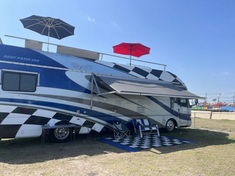Is this RV perfect? Absolutely not it has cosmetic damages and several things that we have not been able to replace yet it is a work in progress but it is perfect for the races the main feature of this RV is the rooftop with an amazing view of track it’s a game changer for sure