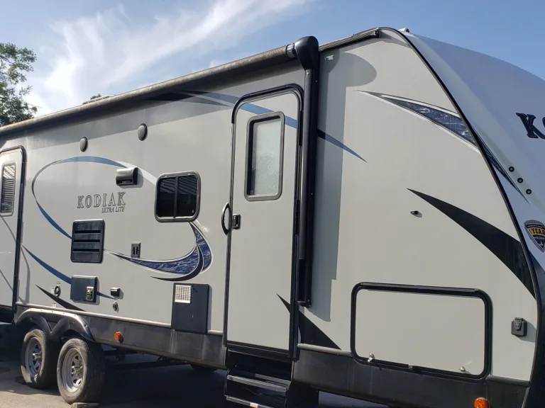 Comfortably sleep in two bunks, one sleeper sofa, one dinette converted and two in closed off queen sized bedroom with sliding door for extra privacy.Lots of well laid out storage throughout inside and outside, locking compartments. Dual fuel fridge/freezer, gas stove and water, two grey and one black water holding tanks with two locking entrances. Neutral colour throughout with all window coverings, no rips or tears in upholstery.4 piece bathroom facilities with roof fan and vent. Sky light, 15kBTU heat cool system, interior and exterior audio and visual connected, solar capable.Linen, blankets and towels included for four guests. Pots and pans and basic kitchen amenities included with complimentary disposable plates, cups and cutlery.2 camping chairs included, ropes for hanging clothes, a flashlight with a built-in charger, bbq utensils, deck of cards, marshmallow rods included.