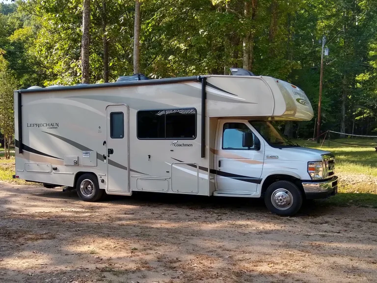 Our 2018 Leprechaun will let you camp in comfort and style. Large enough to accommodate a family of 5, YET small enough to maneuver with Ease at less than 28 feet from bumper to bumper. You can connect to power on a 30 or 50 Amp service. Our built-in backup camera will help you maneuver into your camping spot. The built-in generator has enough power to run the air and everything else if needed. You can access the restroom with the 2 slides pulled in.