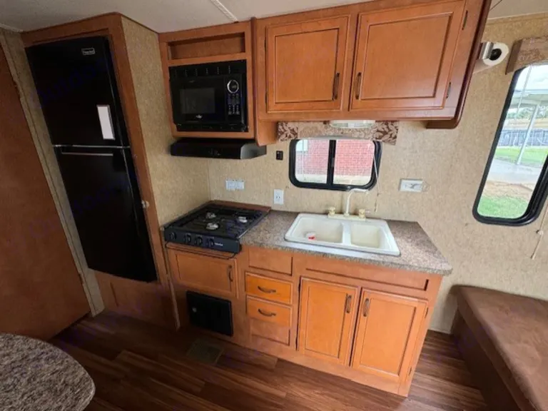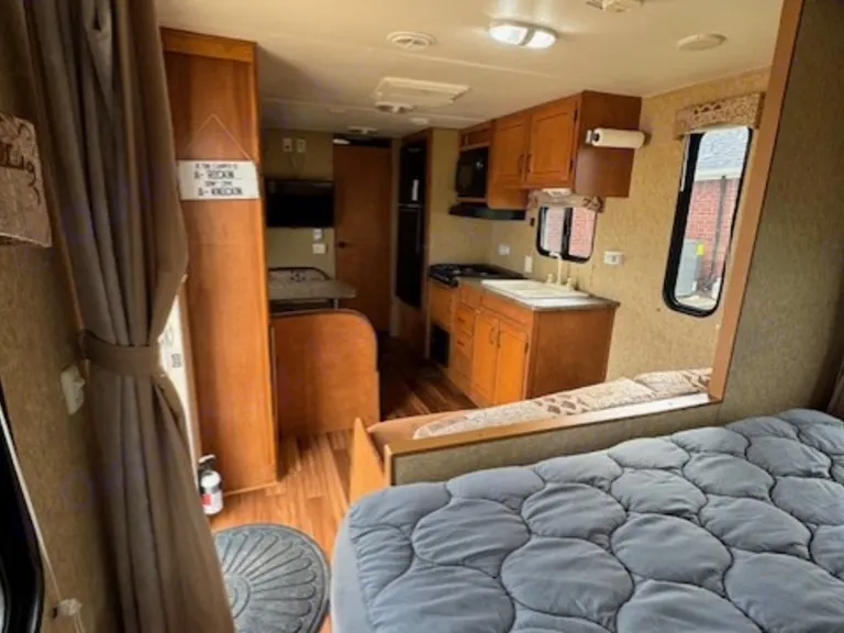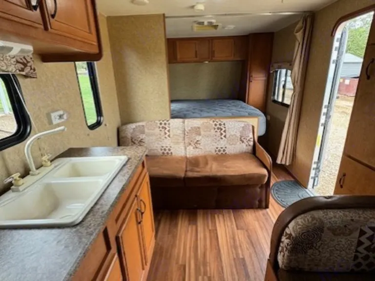 Cozy camper trailer, with a great size kitchen, spacious bathroom, and comfy new bed. Great for a small family's adventures, a couple's retreat, or friends traveling. Easy set up with leveling jacks, water hose, and electrical all on board and ready to go.If sleeping 6, this camper is best suited for 2 adults, and 4 smaller children. Otherwise, it will comfortably sleep 4 adults.Other things to noteNo smoking or pets in camper.