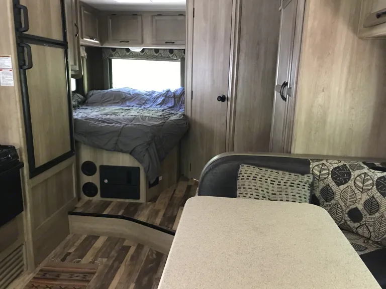 Meet Hank! This is the perfect RV for a family, as the U shape dinette and wardrobe slide out making this RV feel bigger than it actually is. The 22 foot length makes it easy to drive. There is a huge basement for extra storage, an added solar panel and extra battery, and option to include bike rack if needed. Also comes with windshield/window coverings and privacy curtain. We upgraded the standard RV mattress to a queen size memory foam mattress. Rental comes furnished with bedding for queen corner bed, and bed above the driver's seat, a fully stocked kitchen (pots and pans, cooking utensils, plates, etc) and camp chairs!