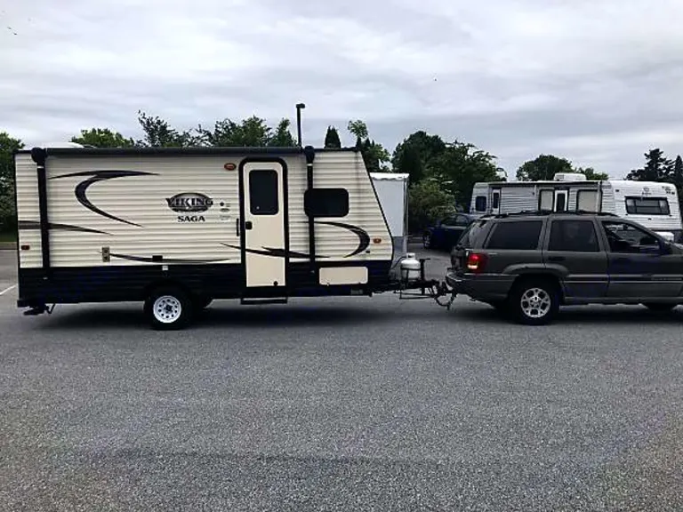 Hi! We're Will and Jackie, we're glad you're here. Our 2017 Viking Saga is in excellent condition and ready to be used for your next camping trip! This 17 ft. travel trailer, with the potential for full-hookup, is a great way to explore the country without having to miss out on the amenities that keep you comfortable. Renters Must have an electric break controller prior to travel. Renters will need to provide their own hitch, or they can rent ours (with sway control) for an additional fee. The trailer can be towed by a class 2,3,4 or 5 hitch, however it is up to the renter to set their tow setup appropriately as we can only provide an option for a class 3 setup. Dry weight of camper is 3500 pounds. For reference -- we have pulled with a Jeep Grand Cherokee and Kia Sorento with ease. Please don't hesitate to reach out prior to booking with any questions regarding hook-up--we're more than happy to help! For late afternoon naps and a good night's sleep there are a set of bunks (sleeps 2 people), a double/queen bed (sleep 2 people) and a dinette that can be turned into a sleeping space (sleeps 1 person) to accomodate a total of 5 people. Dinette can also be turned into a couch for some more R&R. Overhead storage along with under bed and pantry storage are all available to unpack and unwind. As our guests we look forward to making your stay as memorable as possible! For that reason we provide essentials and extras such as: coffee maker, pots/pans, dishes (for 6), paper products, cooler, outside table, portable grill, 3 outdoor chairs and grilling tools! Please return camper as clean as when you picked it up at the beginning of your journey including emptied waste water tanks. If tanks are not emptied a fee of $100 will be added. Anything over light cleaning will be assessed at $20/hr fee. In the event there is any staining or damage charges will be applied to cover costs. Canine campers are welcome in our camper! We know how it is--they are family members too! Please add optional pet fee when booking if you'd like them to come along for the journey. We would be more than happy to answer any questions you may have about our RV. Hope to see you soon. Cheers and Happy Camping!