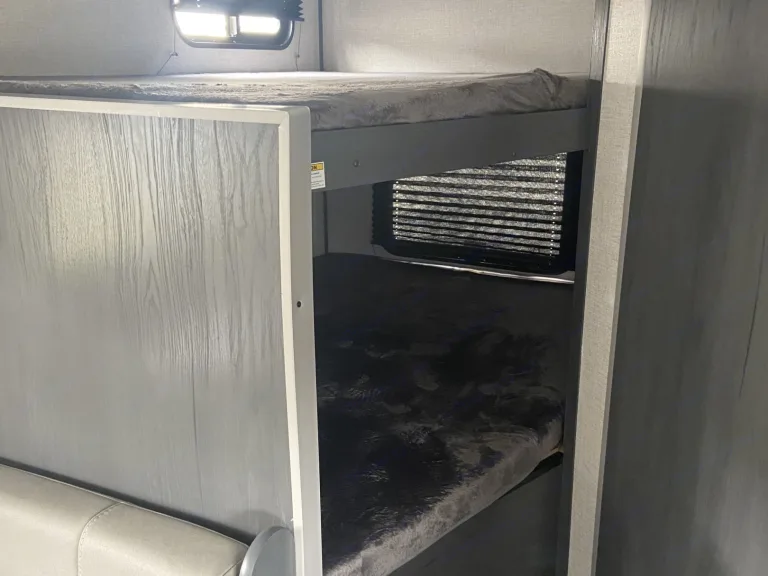 Looking for a sweet weekend getaway? Well here’s your chance! Take the pups, sweetheart, kids, or even friends to have the time of your lives! This brand new camper is equipped with a queen size bed immediately when you walk in, a double size bunk bed, and kitchen table that converts to a bed. There is a full indoor kitchen, as well as an outdoor stove and mini fridge that run on propane. Full bathroom, standing shower, toilet, sink. There is storage space on the right of the bed for hanging clothing, or whatever you may desire, storage space under the bunk beds, queen size and kitchen table seat. What's includedIncluded: