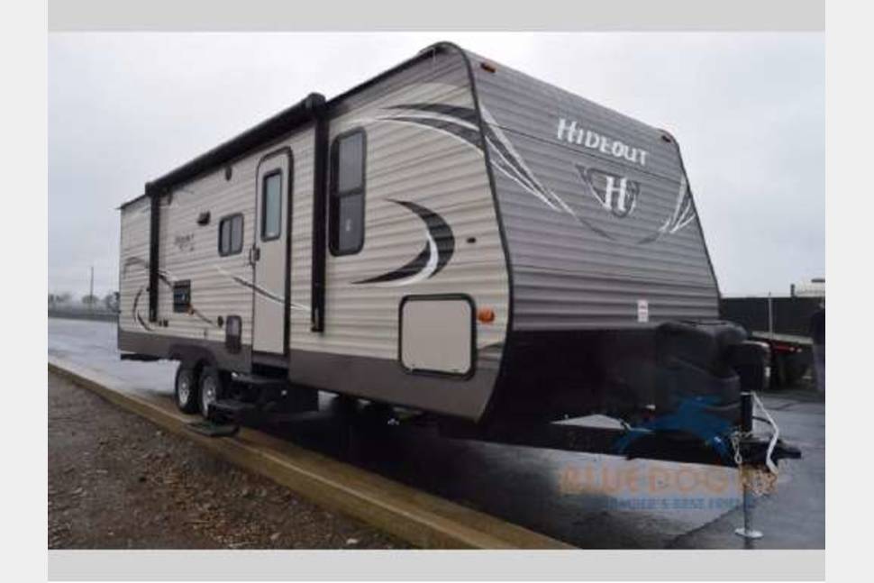 A- Team Hilton!This Keystone Hideout LHS bunkhouse travel trailer 26Lhswe offers a spacious way to travel with a larger family. This unit features a double bed set of bunks, a large single slide for added interior space, plus all of the amenities you need to enjoy spending time away from home.Step inside and notice the front bedroom area behind curtain closures on either side of the entertainment center straight in the door. There is a queen size bed with dual bedside closets for your clothes, plus an overhead cabinet as well.The slide out opposite the door side features a sofa and booth dinette. There is storage above the sofa and both can quickly be made into sleeping space for one extra guest.To the left of the entry door you will find the kitchen area which allows you to prepare and cook food for your family. There is an angled counter with double sink, a three burner range, refrigerator, and food pantry. You will also find ample storage for dishes and things in the overhead cabinets and lower cupboards and drawers.In the rear you will find a set of double bed bunks along the road side with a ladder for easy access to the top bunk. A curtain can be closed for more privacy at night if you like. The opposite corner features a complete bath including a tub/shower, toilet, and corner sink, plus so much more!Cold Mountain Comfort Package