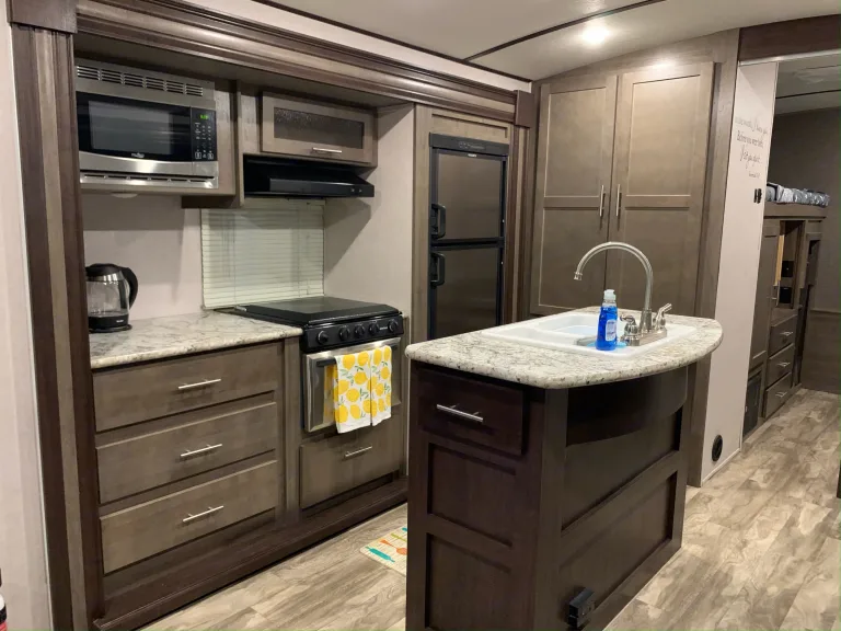 Almost brand new. What's includedEquipped with dishes, cookware, etc., and a weight distribution hitch. Other things to notePlease bring own linen and beddings.