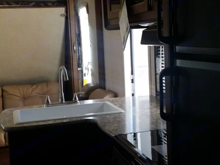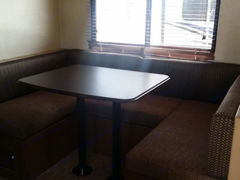 This 24' travel trailer has plenty of room for the entire family. Full size bunk beds in the back, and a Murphy bed which folds up above the couch during the day for maximum space. Table can fold down to accommodate a couple of kids or an adult if needed.