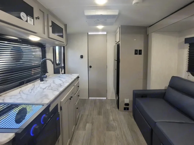 This full service camper is ready for your next adventure. With all your basic needs met. Comes with a couple camping chairs, outdoor blackstone grill, small outdoor table, external flusher hookup for the black and grey tanks, electric cooler, nice size fridge with a separate freezer, storage under the bed is where you will find your folding dining table. Roku tv with wifi capabilities, can hook up a DVD player or gaming systems. Bluetooth rechargeable speaker, power slide and power awning. The AC is amazing and keeps things very cool. The mattress has been replaced with a nice memory foam for a very comfortable sleep. The reclining sofa folds down into a twin bed.Vacuum-bonded Laminated Dual Azdel/Fiberglass Sidewalls Walls & Rear Wall