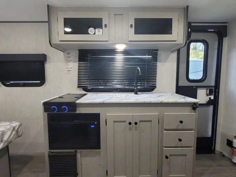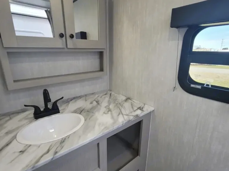 Single Sink W/CoverWhat's included• Comes with bedding, basic toiletries, toilet paper, towels, face cloths, pots, pans, dishes, silverware, cooking utensils and various camping essentials. Also included is a coffee maker, toaster, and an air fryer. Other things to noteNo smoking inside of the trailer please.