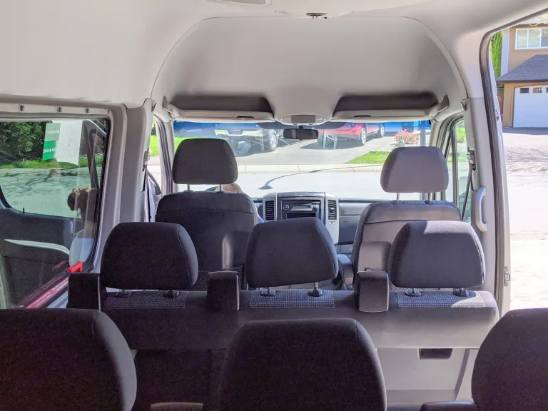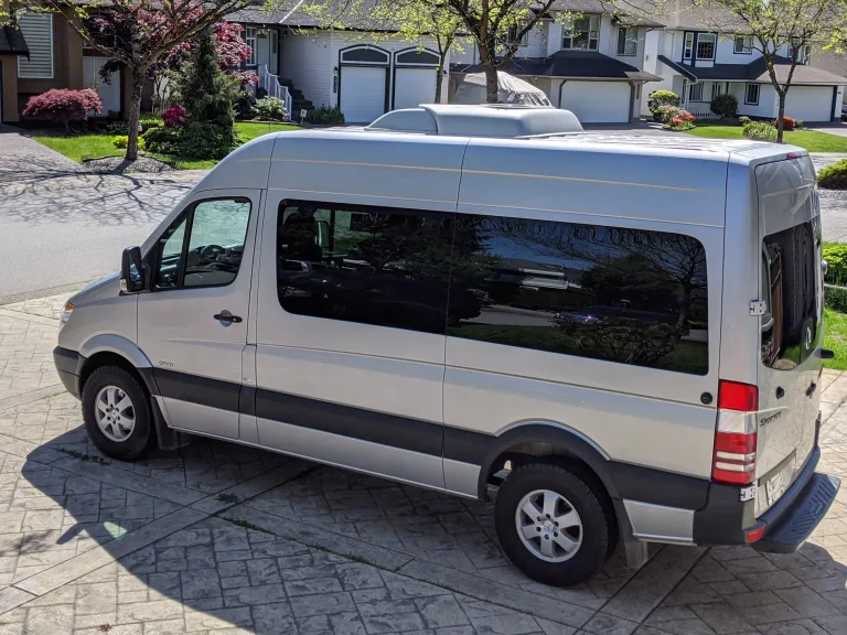 This Sprinter is not RV - it is just a regular 12 seat passenger Sprinter.But it has a lot of storage, and you can load with your camping gear: tents, storage, grills, etc.Also, upon your request, I can configure it to be 8 or 5 passenger van by removing one or two last rows. This way you'll have much more space for the gear.