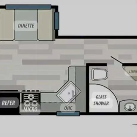This boasting an expansive open floor plan that includes a pair of cozy recliner chairs, a warming electric fireplace, and an oversized window perfect for taking in the scenery. This RV is equipped with two flat-screen TVs for your entertainment, a queen-size bed for restful nights, and ample space to accommodate six people comfortably. The generously sized bathroom is fitted with a full shower, a sink, and a toilet. For your outdoor relaxation, it features speakers with Bluetooth connectivity and an electric awning that extends with ease.