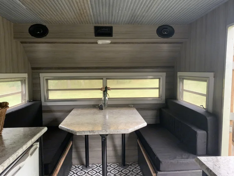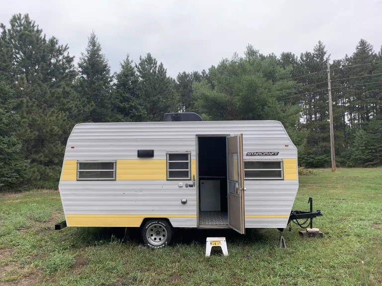 1973 Starcraft camper trailer, exterior is vintage while the interior has been completely upgraded and modernized. New floor, roof, bed, sound system and tires! What's includedCan provide linens and other items as needed or leave bare to allow for personal touches. RecommendationsUse as a backyard escape, slumber parties, taking to festivals or campsites! Other things to noteNo smoking allowed inside of camper, must be respectful and return camper in the condition it was borrowed in. Small pets welcome.