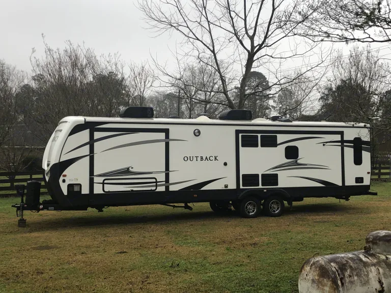 We are located an hour from Orange Beach, Gulf Shores, Perdido Beach, and Florida. This camper was bought brand new off the lot. Very clean, non smokers, and no pets. Camper will come with hose hook ups and power cord for 50 AMP breaker. Has 2 A/C units and an electric heater in the living room. Has lots of storage under table benches, under the bed, big bedroom closets, plenty of pantry storage, 2 refrigerators, and double recliners. The camper is very roomy with 3 slides.