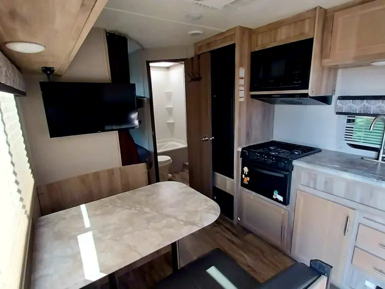 The Couples Castaway is your access to a FUN getaway! This travel tow-behind trailer is fit to provide all you need for your getaway, whether exploring the area you are in or hanging at the campsite the whole time - FUN is guaranteed! Start your day with breakfast cooked in the full kitchen or on the provided charcoal grill, along with a freshly brewed cup of coffee from the provided Keurig. The Couples Castaway is equipped with everything needed to ensure a comfortable and easy outdoor picnicing set up, accompanied with exterior blue lighting for when the sun goes down and Furrion bluetooth stereo system to jam your favorite tunes! Want to do more on your adventure? There are add-ons available to include kayaks, corn hole, beach equipment, and More!What's includedMAXIMUM ease to get up and go provided with the Couples Castaway. Pack your clothes and essentials because the Couples Castaway has the rest! This unit is fully equipped with pillows, fresh linens, cookware, utensils, towels, and a FULL outdoor set up to include outdoor rug, camper chairs (2), table, and trashcan. Delivery and pickup within a 100mi radius available upon request.RecommendationsMaryland is COVERED with tons of scenic destinations and with that comes MORE adventurous FUN! Add our kayak rental to your reservation and head out on the water near your camp site. Not only will we provide the kayaks, paddles, and PFDs but also knowledge of many of Maryland's waterways.Looking to stay in the Perryville area to enjoy the Susquehanna River life?? Let us know! The Couples Castaway can be enjoyed here on our property, where all of the same services (and MORE!) are provided during your stay! Other things to noteAs much as we love our furry friends, no pets allowed.