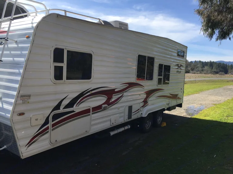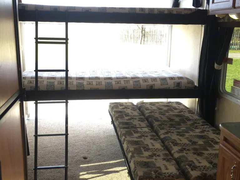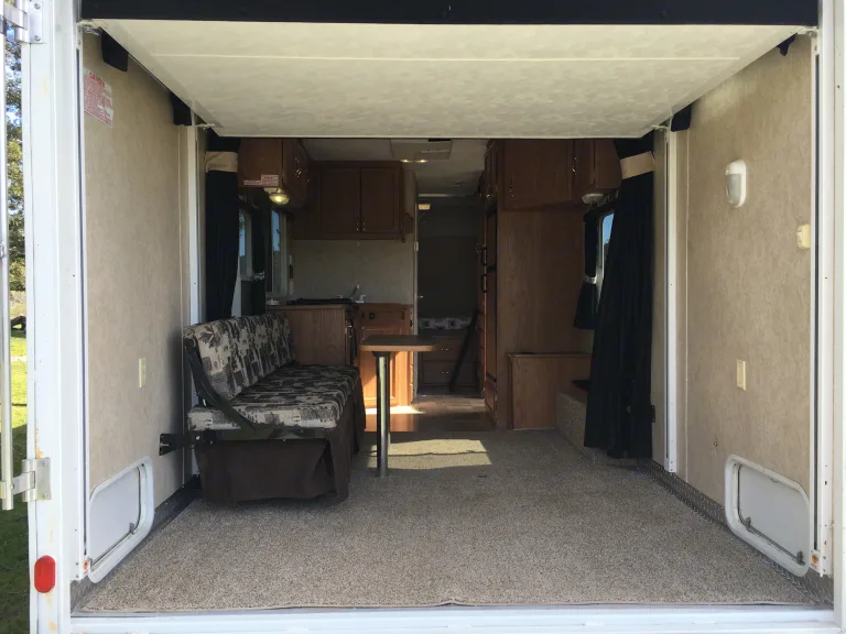 This relaxing retreat is great for friends, families or a romantic getaway. With three queen beds, a full refrigerator/freezer, full shower and bathroom, and fully stocked shelves, the only thing you have to worry about is enjoying yourself. As a Toyhauler, the back door offers space for any oversized outdoor fun, bikes kayaks or anything else. This feature also offers a great option to embrace the fresh air or close the door for a more intimate atmosphere. The outdoor/indoor speakers and awning creates a renewing environment. Just relax and enjoy, everything else is taken care of. What's includedWe ask you to bring your own linens, pillows, and towels to make your stay like home.