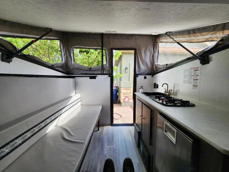 What's includedExtra Battery – 24 volt converted for more power on longer off-grid staysBonus Tent Room – Attaches to the camper for extra space to sleep, change, or chill2 camp chairs for relaxing and enjoying the mountain views.🐾 Dogs, Absolutely! Furry co-adventurers are welcome.