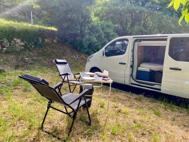 Experience stylish vanlife in a fully converted former ambulance.This Renault Trafic 3 has been carefully transformed into a comfortable and functional campervan, perfect for road trips with total freedom. Compact, easy to drive, and fully equipped for any adventure.Comfort for 2Cozy double bed convertible into a sofaHeating and air conditioning (front and rear)Insulated for year-round travelFully equipped kitchen2-burner stove + grillFoldable worktopCookware and utensils includedCooler providedFull autonomyPortable shower (20L)Water storage (15L + 2×5L)Portable toiletBluetti power stationSolar panel for off-grid travelSmart storageEntertainment & comfortSmart TV (Netflix and more)Board games and booksAdjustable LED lightingEasy & efficientUnder 2m height (parking friendly)Fuel efficientEasy to drive, perfect for all travelersTrue vanlife experienceOutdoor table and chairsCozy interior and thoughtful detailsIdeal for weekend getaways or long tripsYour perfect campervan for a stress-free and comfortable road trip. Book now and start your adventure.///Partez à l’aventure avec style à bord d’une ancienne ambulance entièrement aménagée.Ce Renault Trafic 3 transformé avec soin est le compagnon idéal pour un road trip en toute liberté. Compact, confortable et autonome, il est parfait pour découvrir la mer, la montagne ou la campagne sans contrainte.Confort optimal pour 2 voyageursLit double confortable transformable en banquette en quelques secondesChauffage et climatisation (avant et arrière)Isolation renforcée pour toutes saisonsCuisine équipéeRéchaud 2 feux + grillPlan de travail escamotableVaisselle complète (casseroles, poêles, ustensiles)Glacière incluseAutonomie complèteDouche portable 20LRéserves d’eau (15L + 2×5L)Toilettes portablesStation électrique Bluetti (charge téléphones, PC, etc.)Panneau solaire pour autonomie énergétiqueNombreux rangementsConfort & loisirsSmart TV (Netflix, films…)Jeux de société & livresÉclairage LED modulable (ambiance cosy)Facile à conduire & économiqueHauteur < 2m : accès parking facileFaible consommationManiable, idéal débutants comme confirmésExpérience vanlife complèteTable pliante + chaisesAmbiance chaleureuse et détails soignésParfait pour week-end ou road trip longue duréeLe van idéal pour voyager librement, avec confort et autonomie. Réservez dès maintenant et vivez l’expérience vanlife.