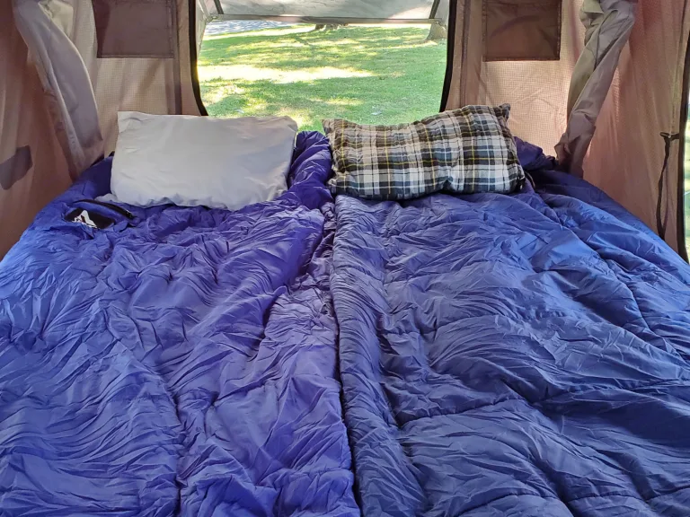 What's included6X8 Shade Awning, Waterproof pillow case and mattress protectors, fresh sheets and pillow cases, sanitizing wipes, 2 sleeping bags, 2 pillows, 2 camp chairs, Coleman camping stove, camping cookware and dishes, lantern.