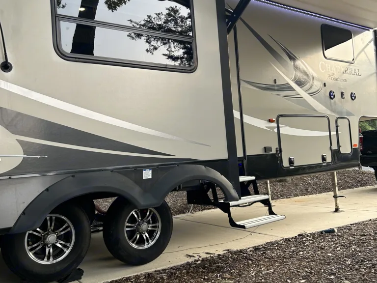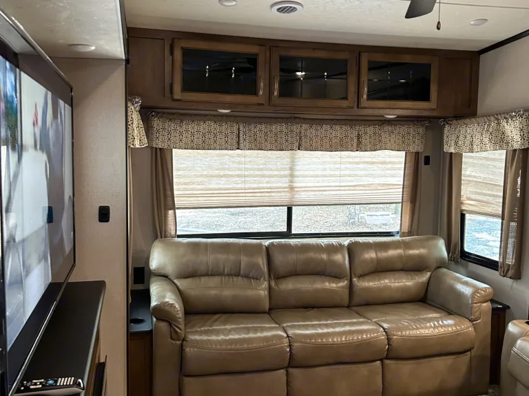 Cruise into your next adventure in our 30 ft 2018 Coachmen Chaparral! This fifth wheel sleeps up to 4 adults comfortably and has everything you need to enjoy your stay. Featuring a private bedroom with a queen bed, a spacious living room thats equipped with a plush pull-out, dual reclining theatre seats, a fireplace, full kitchen, and an outdoor entertainment space that includes a tv, speakers, and a partial kitchen. This unit has all the bells and whistles!What's includedComes fully furnished and fresh linens will be provided.RecommendationsPerfect for tailgating and glamping!Other things to noteNo smoking