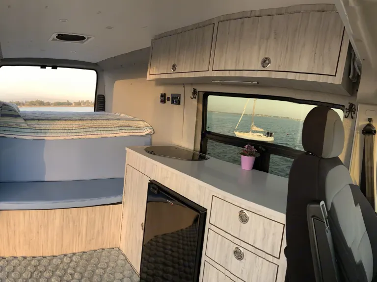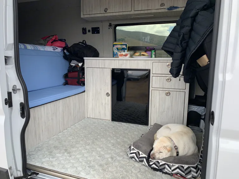 Hiya! We are Jenn + Dave,,,+ Izzie the shar-pei! We're stoked about our newly constructed VANessa & NirVANa!, and we love takin' them out, especially for kiteboarding and mountain bike riding. So far our favorite is shreddin' the trails in Santa Cruz and thru out OR!! For our professional build-outs, we kept things simple, as we aren't "total" glampers (aka everything but a permanent toilet), and keep it open/not crammed! And we absolutely love how well it's worked out!! 😃 We used the best insulation and build materials. We just finished 35 days in British Colombia and NirVana did not miss a beat!