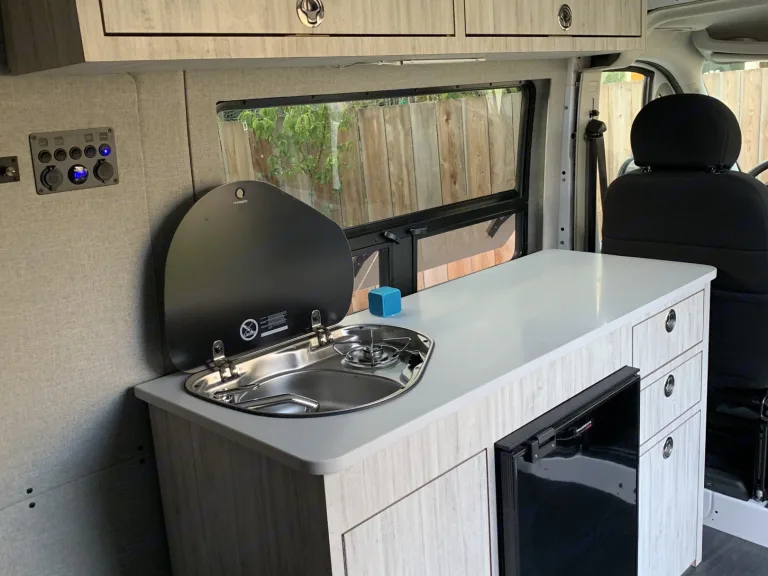-Sink w/running water (electric pump, 7gal H20 tank, 7gal grey tank)