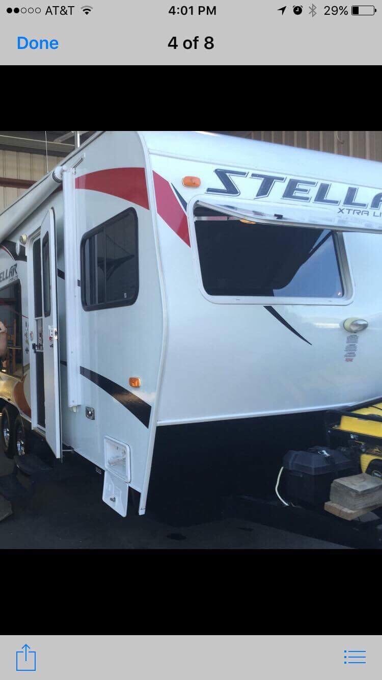 It doesn't get better than exploring in a TOY Hauler while also enjoying all the amenities of being at home. This beautifully appointed toy hauler boasts with touch button everything, a table, 2 upholstered captain chairs, a/c/heat, TV, surround speakers outside and inside, 2 queen size beds, 1 couch that turns into a fulls size bed, fridge, 3 burner cook top, microwave, outdoor shower. This toy hauler is easily able to tow up to three quads and a Razor.Great, Lightweight (only 5000lbs empty), Easy-to-Tow ToyHauler. Very Roomy, Sleeps 6 • Includes generator • push button Awning & Beds • TV • Microwave • Stove • Refrigerator • Full Bath.Price Includes: