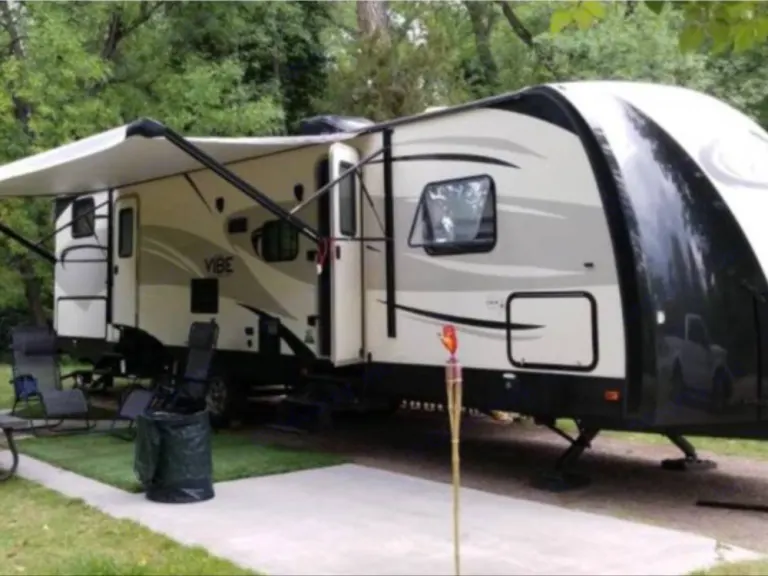 The Quick: this awesome fully appointed trailer can fit up to 10 between the two bedrooms and living room space. It has everything you and your family need for a great time including outdoor kitchen, indoor/outdoor speakers, and. Wifi enables TV! We are flexible, friendly owners who like to ensure our renters have the best experience possible!The Long: This Ultra Light Travel Trailer can be pulled by a half-ton truck* (we use an F150 ) and is a 2-bedroom with an outdoor kitchen that sleeps 10+! Fully appointed and ready to go.. just bring your food, beverages, and personal effects and you are ready to roll!***Not all 1/2 tons can tow this trailer! Please check your vehicle specifications prior to booking... Weight Distribution Hitch (WDH) included free with rental. A 2" receiver and electronic break control required. Total weight dry is appx 8,200lbs***If you don’t want to tow, be deliver to the Phoenix Metro area $40/each way and can negotiate longer distances.One room is a queen bed with two wardrobes, and the second room is a bunkhouse with 3 beds and plenty of room for extra cots or pack-and-play. Perfect for a family with little ones or a large group. The doors are actual hard doors vs curtains for maximum privacy. There is an additional jackknife couch and the dinette turns into a bed.The bathroom has a shower and small tub, and the kitchen is fully stocked with plates, cups, bowls, utensils, cooking utensils, pots, pans, coffee maker. Includes cleaning supplies, linens, etc.This trailer is perfect for dry camping in the forest to an RV park on the beach (we've personally done both!)We have full setup/takedown instructions and a generator available for unlimited use for $25/day if necessary. Electronic brake controller with receiver *required* and mirror extensions are highly recommended.We highly prefer that you have experience towing a trailer as this is a 36' trailer.15% discount for military personnel - we thank you for your service!Pet deposit of $250 and pet sanitation fee of $50. Small dogs only. No cats due to allergies.If you do not want to clean the black water holding tank we will gladly do it for you for $75.Dimensions