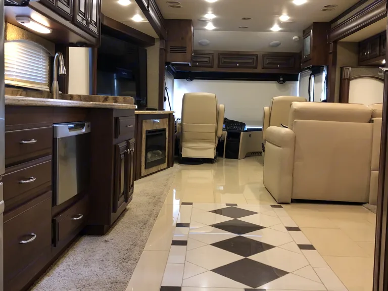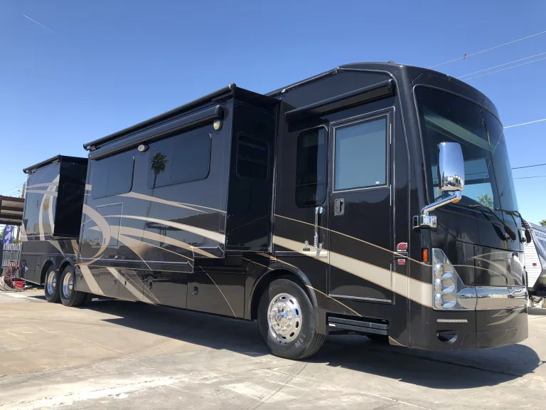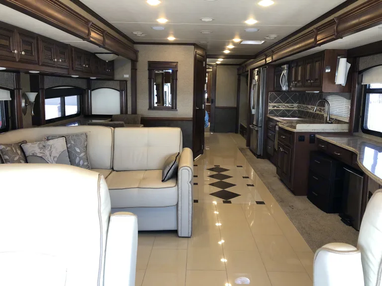 The Tuscany is a sophisticated Class A diesel motorhome. This luxurious motorhomes offers the ultimate in beauty, style and power, with the most livable floor plans and high-end amenities. The refreshing wide open floor plan is complimented by custom furniture, polished porcelain tile inlay, and high-gloss glazed hardwood cabinetry.