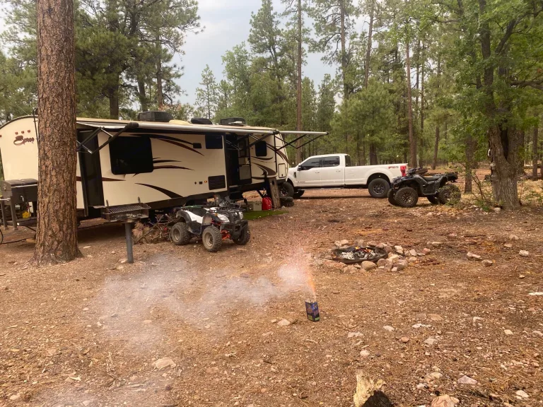 37’ travel trailer with 1 bedroom that has a king size bed a full living room with two recliners and one pull out bed. A kitchen with a residential fridge and dinning area to accommodate friends and family on your tripWhat's includedAll pots, pans, utensils, coffee maker, plates, bowls, cups, fresh linens, camping chairs, tent for extra guest, games, generator and a charcoal grillRecommendationsBear canyon lake is one of our favorite places to take our camper. It’s not over crowded and being able to fish or swim in the lake adds a whole other element