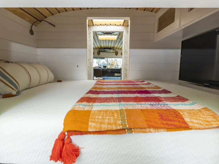 * Will sleep up to 4, by way of an amazing full-sized tuft and needle mattress in the rear and an extra long (4 inches longer) full-sized pull-out sofa bed in the front with a custom-made mattress.